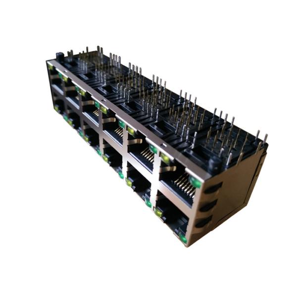 | 2X6 Port 8P8C RJ45 Female Connector with 5G Base-T Transformer , Green/Green LED,Tab Up/Down,RoHS | |