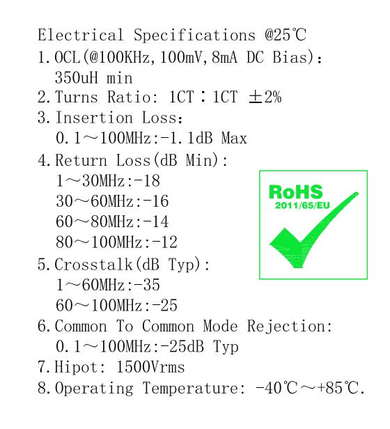 0845-2R1T-E4 RJ45 Connector Magjack Description: