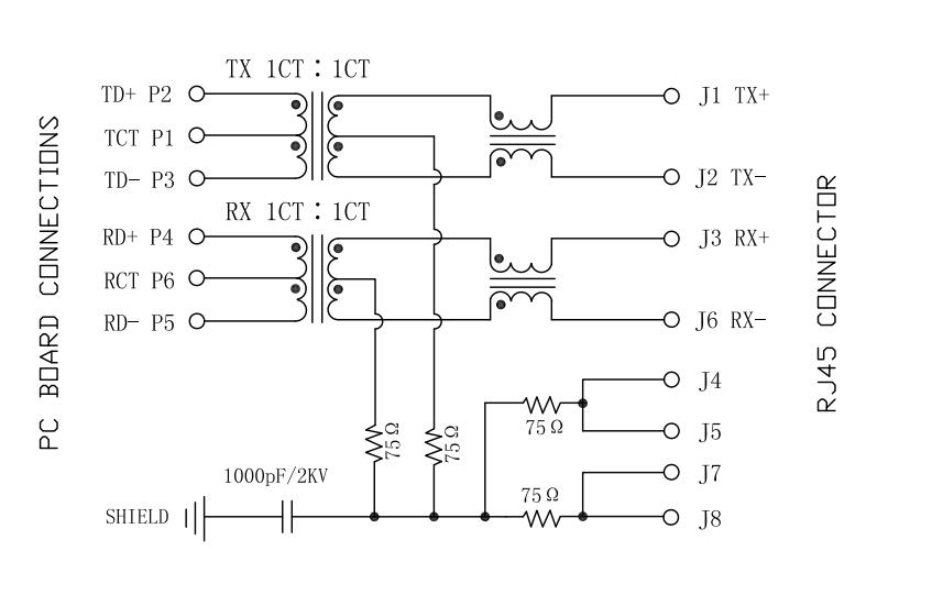 08B1-1X1T-06-F 100 Base-T 1x1 Port RJ45 Magnetic Jack Circuit Diagram: